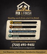 Fix & Finish Pro Services proudly serves Gainesville, FL, Ocala, FL, and surrounding areas with professional residential and commercial painting and carpentry services. We specialize in interior painting, exterior painting, finish carpentry, trim installation, baseboards, decks, siding, and detailed woodwork. Our experienced team delivers high-quality craftsmanship, reliable service, and attention to detail on every project. Whether you need a home refresh, commercial property painting, remodeling support, or custom carpentry work, we provide dependable solutions from start to finish. Contact us today for a free estimate and experience quality work you can trust in Gainesville and Ocala.